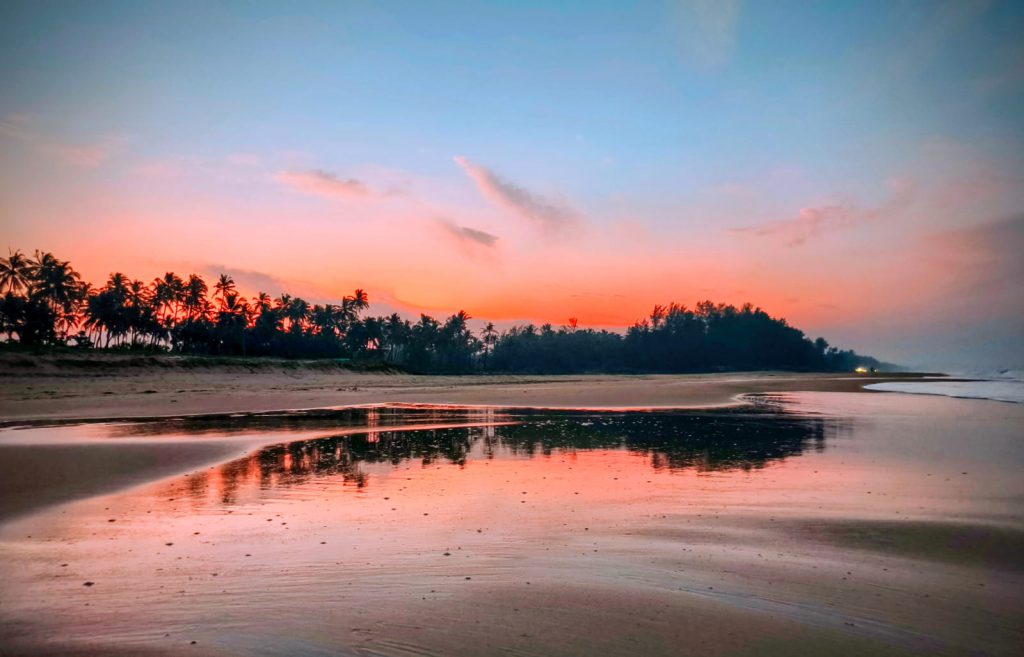 Staying at Nirvana Beach was a peaceful and memorable experience 🌊✨. The beach is quiet and almost private, with very few people around, making it perfect for relaxation. There are only a handful of resorts and homestays nearby. We stayed at Parna Kuteera, which offers options like dormitory rooms, family rooms, tree houses, and even tents ⛺. We chose a tent right near the shore, falling asleep to the sound of gentle waves and waking up to the sunrise over the sea 🌅. It was a truly unique way to enjoy the serene beauty of the beach.